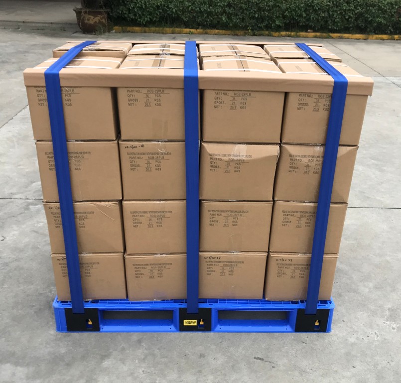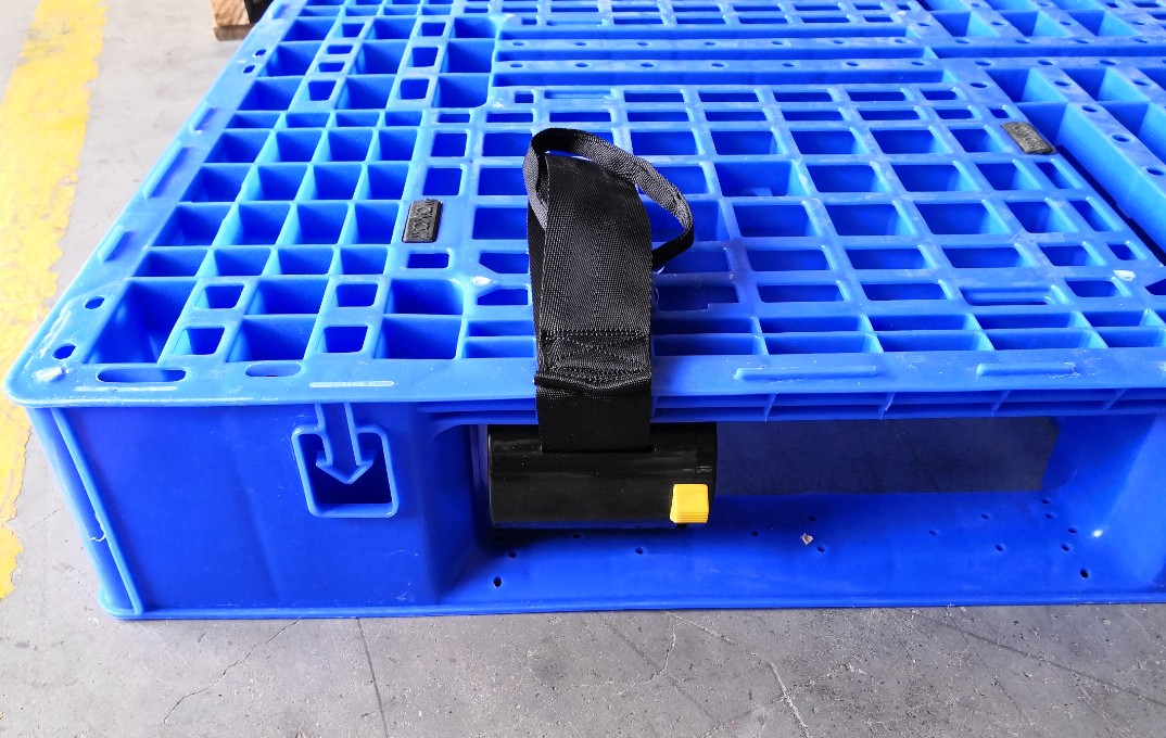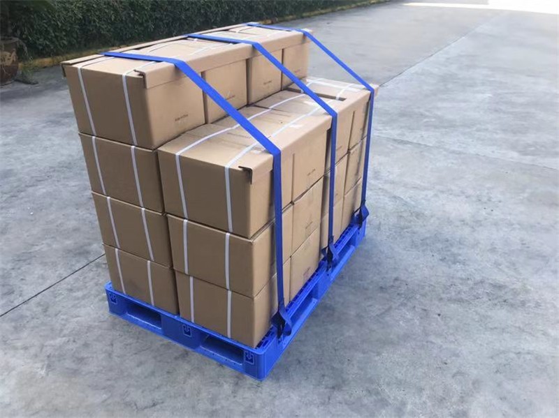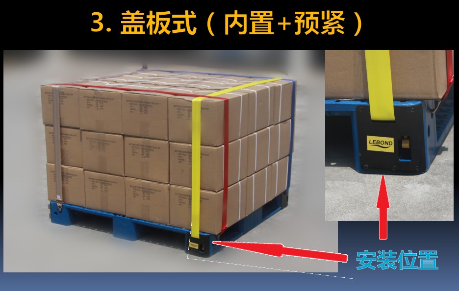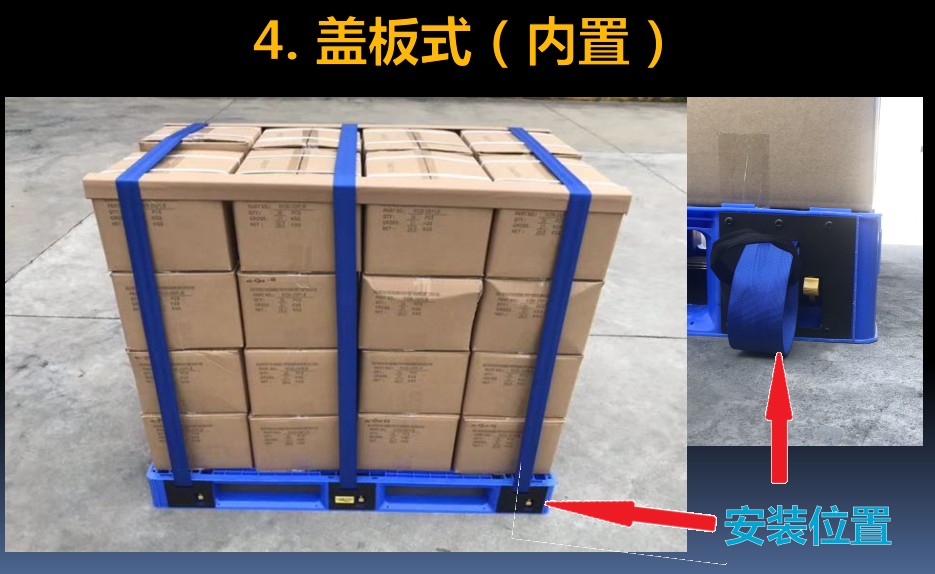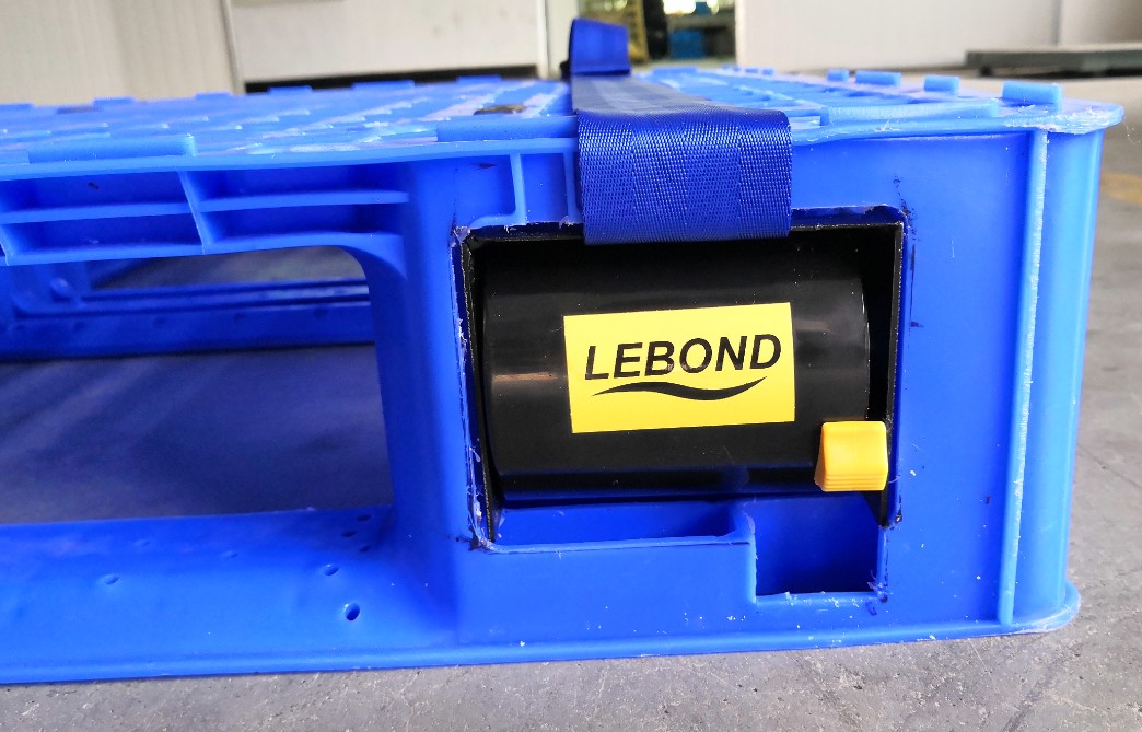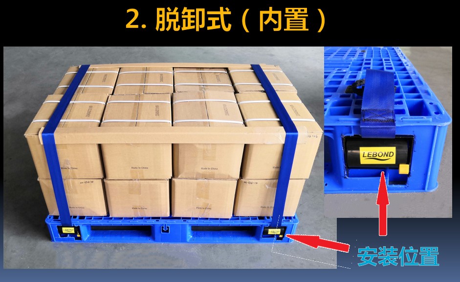 ●捆綁帶使用后可以自動收卷,藏于托盤內部,不外露,不影響存放和叉車使用。