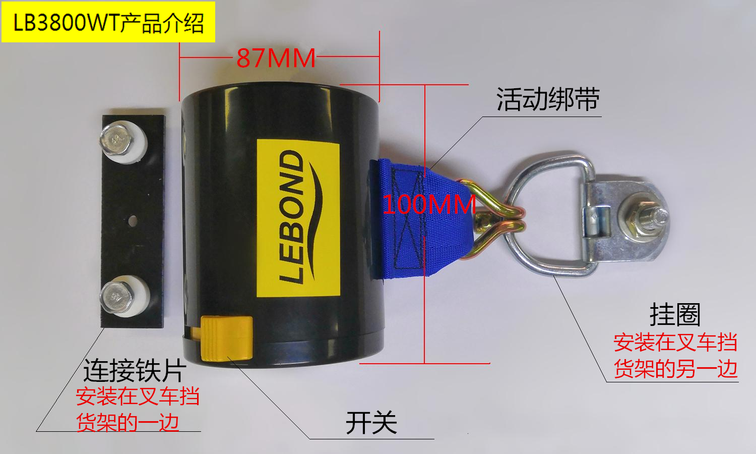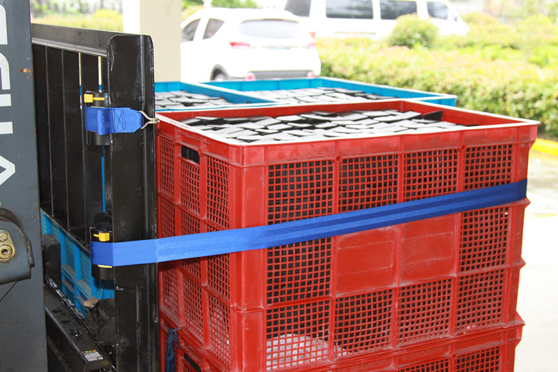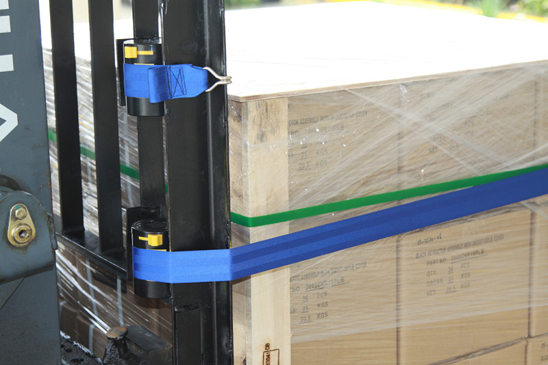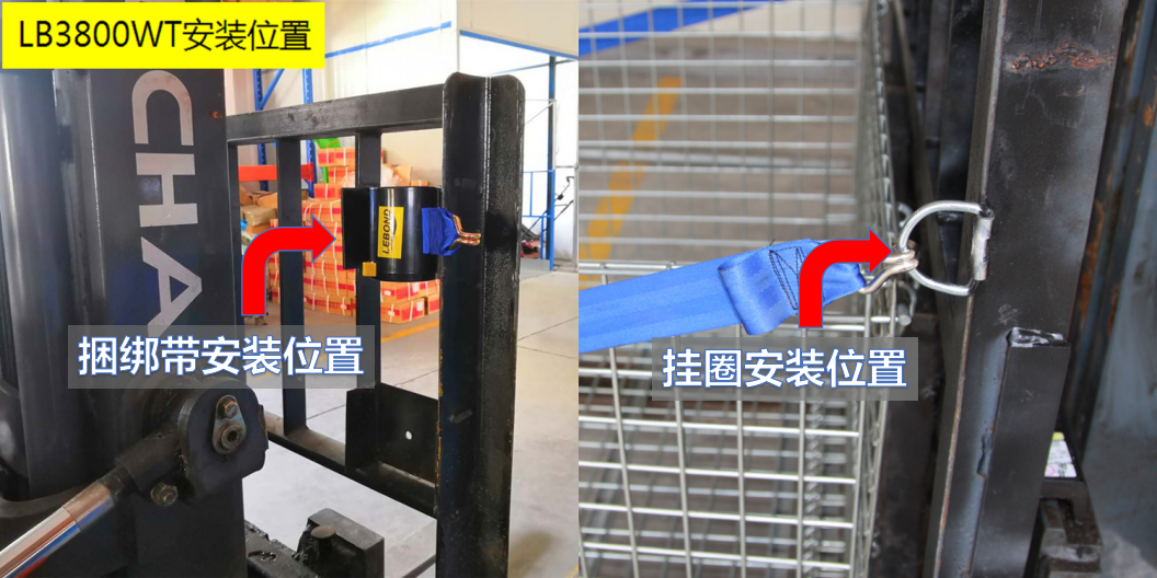 捆綁帶安裝在叉車護欄架右側(叉車駕馳員右手側)。